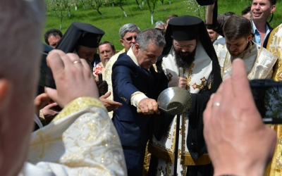IPS Laurentiu, Mitropolitul Ardealului, a pus piatra de temelie pentru o biserica noua Prislop, alaturi de Gigi Becali