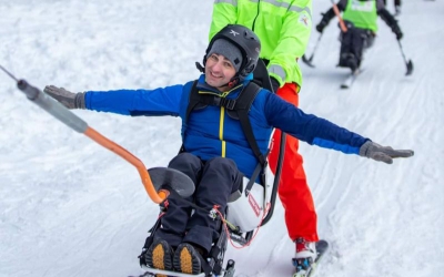 Ionuţ Stancovici, bărbatul care duce persoane cu dizabilităţi la schi. Până acum a reuşit să accesibilizeze 10 pârtii