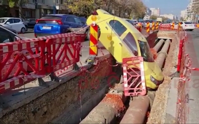 Constanţa: Un taximetru fără şofer s-a pus în mişcare, a intrat pe contrasens și a căzut într-o groapă