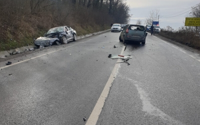 Accident la intrarea în Mediaș după ce două mașini s-au ciocnit frontal. Trei victime