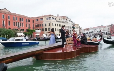 VIDEO Veneția: omagiu inedit adus victimelor Covid pe o barcă gigantică în formă de vioară