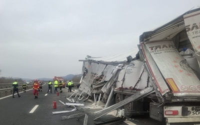 Trafic deviat de pe A1. Autostrada este blocată, între Simeria și Șoimuș după un accident cu două TIR-uri, unul încărcat cu sulfat de amoniu. „Conducătorii auto sunt în afara oricărui pericol”
