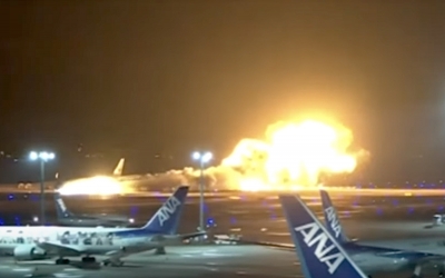 Explozie pe pistă: un avion cu 367 de pasageri s-a lovit de un altul pe un aeroport din Japonia