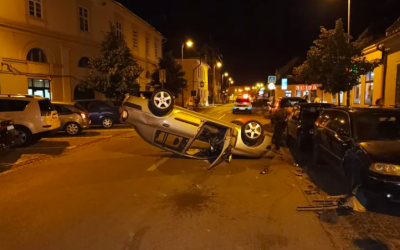 O tânără șoferiță s-a răsturnat cu mașina în centrul Sibiului