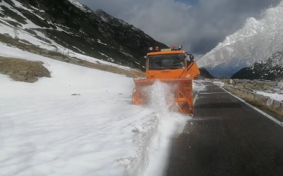 VIDEO Te uită cum ninge în iunie: drumarii sibieni deszăpezesc pe ninsoare