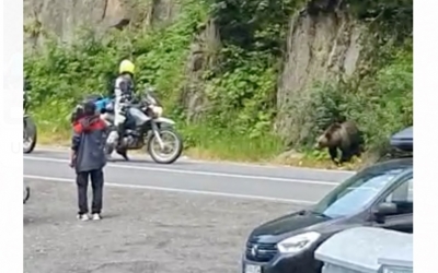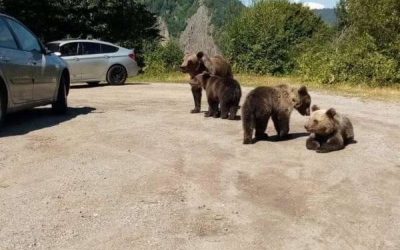 Un turist care hrănea urşii într-o parcare de pe Transfăgărăşan, amendat de jandarmi
