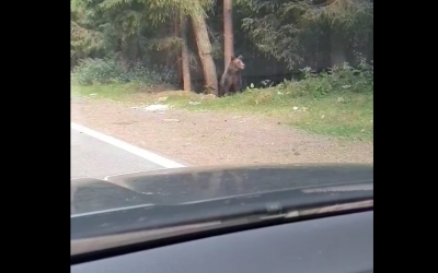 VIDEO Spectacol cu un urs pe Transfăgărășan. ”L-am fugărit cu microbuzul când la rându-i fugărea niște turiști”