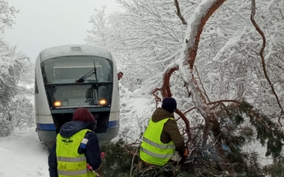 Un tren cu 100 de călători, blocat în apropiere de Petroșani din cauza unor arbori căzuți pe șine