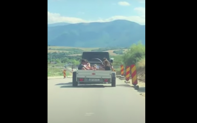 Copii transportați precum sacii de cartofi, în remorcă. Poliția îl caută pe șofer