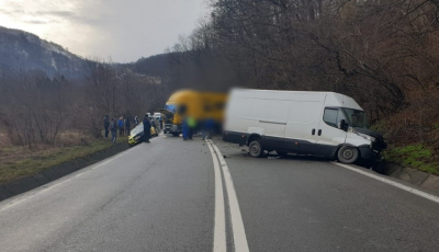 Accident între un TIR, o dubiță și o mașină, pe Valea Oltului. Traficul este blocat total