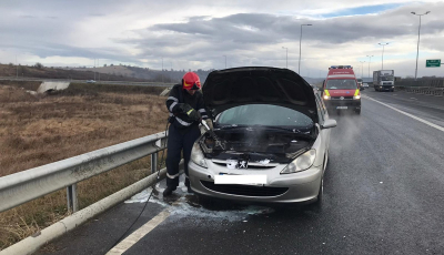 O mașină a luat foc pe autostrada A1, în apropiere de Miercurea Sibiului