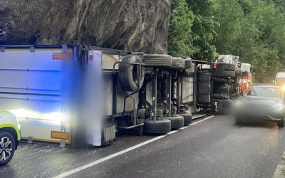 Un tir cu înghețată, răsturnat pe Valea Oltului. Se circulă alternativ