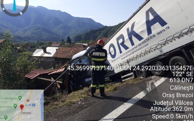 Trafic blocat complet pe Valea Oltului. Un TIR a ajuns într-o curte