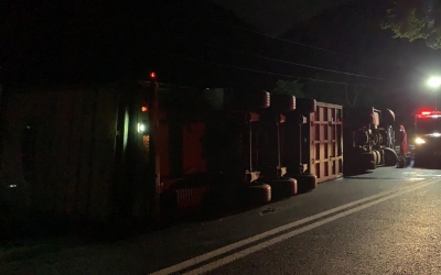 Un TIR încărcat cu porci s-a răsturnat pe Valea Oltului