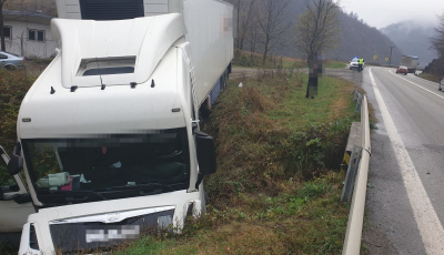 FOTO - TIR scăpat de sub control pe Valea Oltului