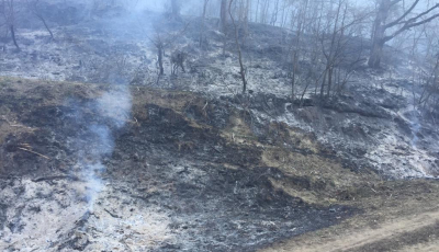 FOTO Pădure de pe Valea Oltului, în flăcări de marți: Focul a pornit de pe proprietate privată