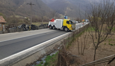 Trafic blocat total pe Valea Oltului, pentru înlăturarea TIR-ul implicat ieri într-un accident