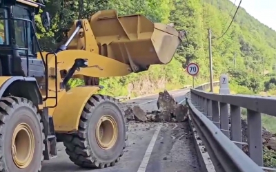 Actualizare: O piatră căzută pe o mașină, pe Valea Oltului. CNAIR închide o bandă