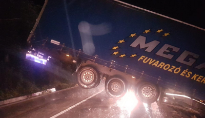 Valea Oltului blocată de un TIR. Șoferul nu a adaptat viteza într-o curbă, pe ploaie