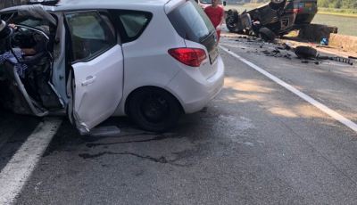 Accident pe Valea Oltului. Un autoturism a fost proiectat în două autotrenuri