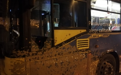 Autobuz Tursib vandalizat de mai mulți tineri, care au spart un geam. Călătorii au fost dați jos, iar mașina a plecat la garaj