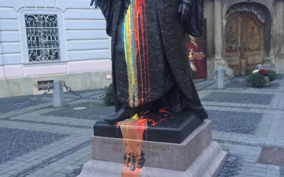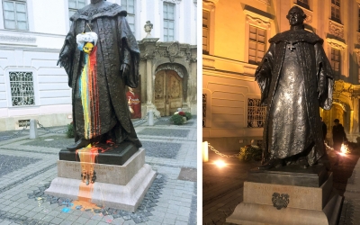 Bărbatul care a vandalizat statuia lui Brukenthal, amendat cu 500 de lei