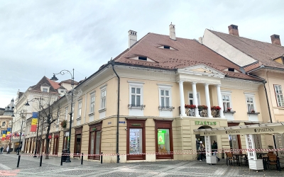 Țigle căzute de pe o casă din centrul Sibiului. Poliția locală restricționat accesul