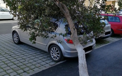 FOTO-Urmările vântului puternic de astăzi: Copaci doborâți pe mașini, acoperișuri afectate