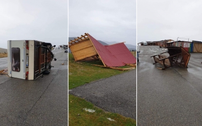 VIDEO. Vânt extrem de puternic, pe Transalpina: au fost răsturnate inclusiv rulote