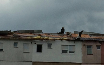 Vântul puternic a cauzat probleme în oraș – țigle în curtea unui spital, izolație desprinsă de pe un bloc și copaci căzuți - FOTO