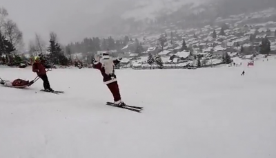 Moșul s-a urcat pe schiuri în ziua de Crăciun | VIDEO