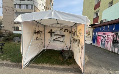 Un sibian „din vecini” filmat de camerele primăriei în timp ce vandaliza cortul AUR