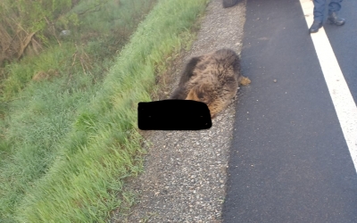 Ursul lovit ieri de mașină lângă Scoreiu a agonizat trei ore până a murit