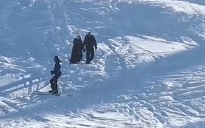 VIDEO Definiția ”paltonarilor”: un cuplu salvat de jandarmii montani pe o pârtie de schi. Ea avea fustă și palton