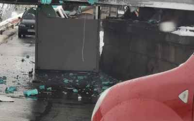Microbuz care transporta ouă, blocat sub podul de pe Viitorului