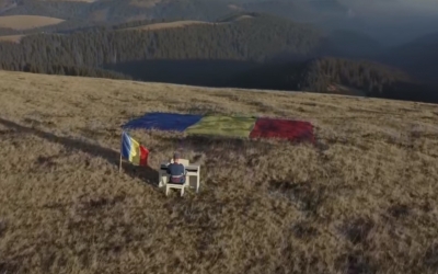 Video viral. Imnul României, cântat la pian de un jandarm, în vârf de munte