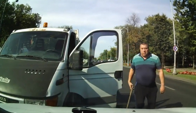 Video. Șoferul care mergea cu mașina pe contrasens și a ieșit cu bâta în mână, este polițist