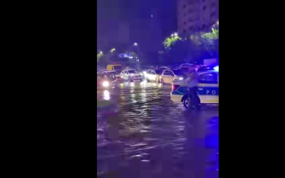 Viral: Imagini cu un șeful polițiștilor rutieri din București care dirijează traficul într-o intersecție inundată