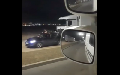 VIDEO Noua distracție stupidă a tinerilor din Sibiu: Drifturi cu oameni atârnați pe plafonul mașinii