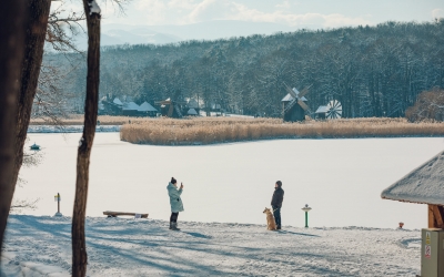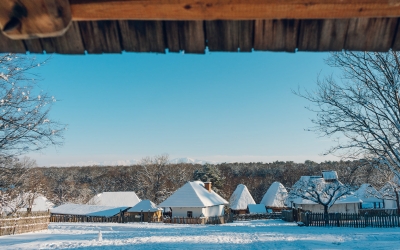 FOTO/VIDEO Muzeul Satului sub prima ninsoare: Este suficientă zăpadă pentru săniuș