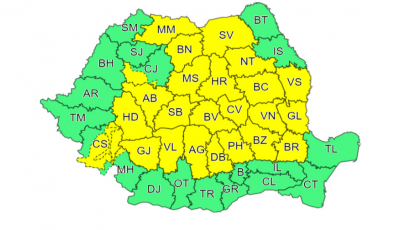 Cod galben de ploi torențiale și vânt puternic în tot județul