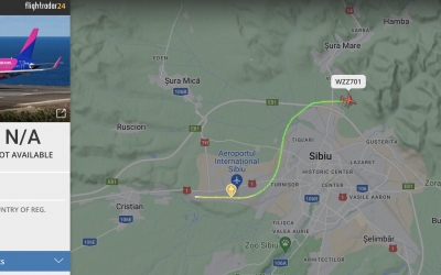Zboruri școală Wizz Air deasupra Sibiului. O aeronavă execută astăzi operațiuni ”touch and go”