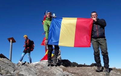 FOTO. 10 ani de când colonelul Codruț Galaftion duce drapelul României pe vf. Moldoveanu de Ziua Armatei