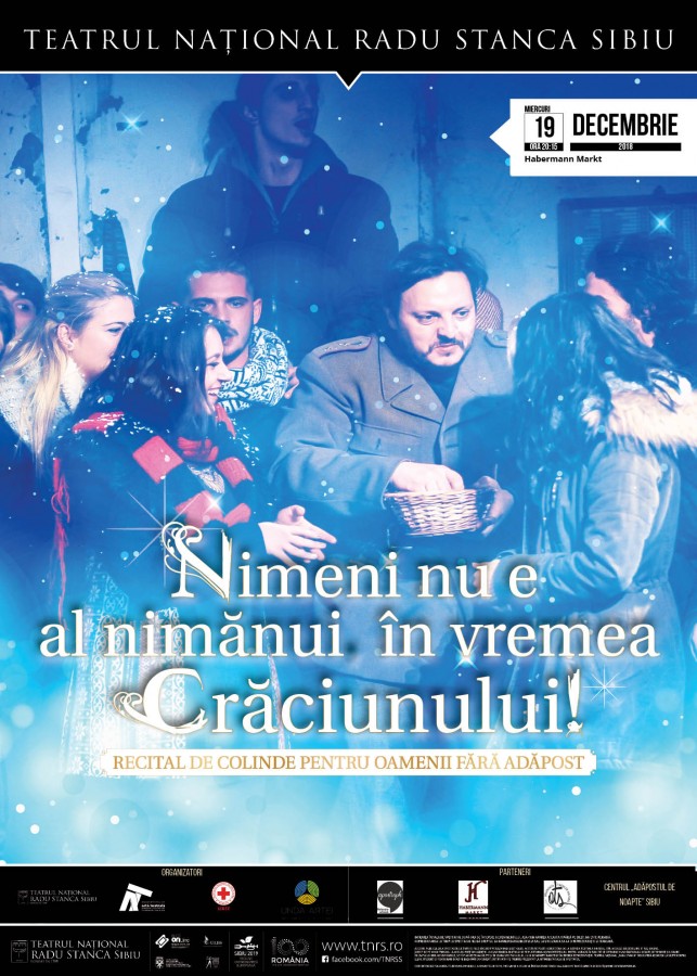 Actorul Florin Coșuleț și colegii din distribuția spectacolului „Țesătorul de vise - Poveste de Crăciun” vor susține miercuri, 19 decembrie 2018, un recital de colinde dedicat oamenilor fără adăpost. Evenimentul, parte a campaniei „Nimeni nu e al nimănui în vremea... Citeste mai mult
