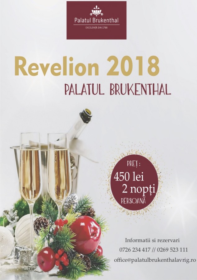 O ofertă specială pentru Revelion 2019 este pregătită de Palatul Brukenthal din Avrig. Suma este redusă de la 450 de lei pentru cei care se hotărăsc acum unde să-și petreacă începutul lui 2019. ”Ofertă Pentru Revelion 2019! Sărbătorește la Palat 2 nopți: 31 decembrie și 1 ianuarie.... Citeste mai mult