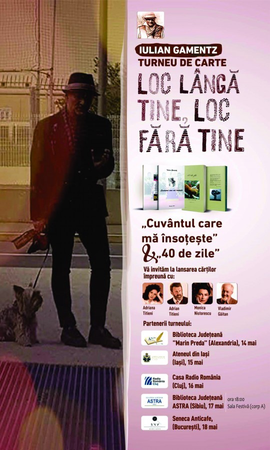Scriitorul româno-canadian, Julian Gamentz, organizează Turneul de carte ”Loc lângă tine, loc fără tine”, în cinci orașe din România, în perioada 14 – 18 mai 2018. Julian Gamentz, autorul poemului manifest «La moartea Regelui meu drag al României», își va lansa... Citeste mai mult