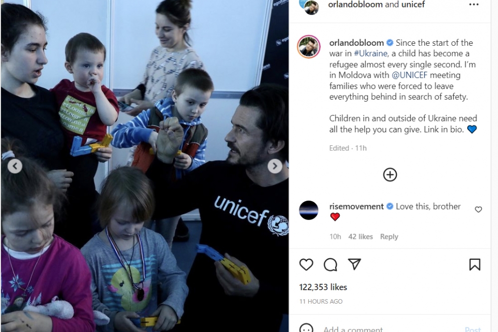 Actorul britanic Orlando Bloom, cunoscut ca Legolas în Războiul Inelelor sau Will Turner din Pirații din Caraibe, se află în Republica Moldova pentru a ajuta copiii refugiaților ucraineni, scrie jurnal.md. În 2009, Bloom a fost desemnat Ambasador al UNICEF: „De la începutul... Citeste mai mult