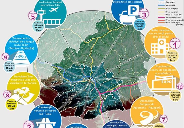 Sondaj în parteneriat cu Banca Mondială: Ce investiții vor sibienii?Centura ocolitoare Sud, Aquapark, trasee de biciclete, parcări subterane, tren urban sau sală de spectacole și conferințe? Federaţia Zonelor Metropolitane şi Aglomerărilor Urbane din România, în parteneriat cu Banca Mondială, a lansat marţi o consultare publică pentru stabilirea proiectelor prioritare -