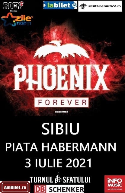 Phoenix Forever concertează la Sibiu. Cele mai cunoscute piese vor răsuna în Piața HabermannPhoenix Forever se întâlnește cu publicul sibian în iulie, în cadrul spectacolului „Phoenix Classic – the Best of”. Astfel, în 3 iulie, de la ora 21, în Piața Habermann, se vor auzi cele mai cunoscute piese ale formației. „Nicu Covaci -