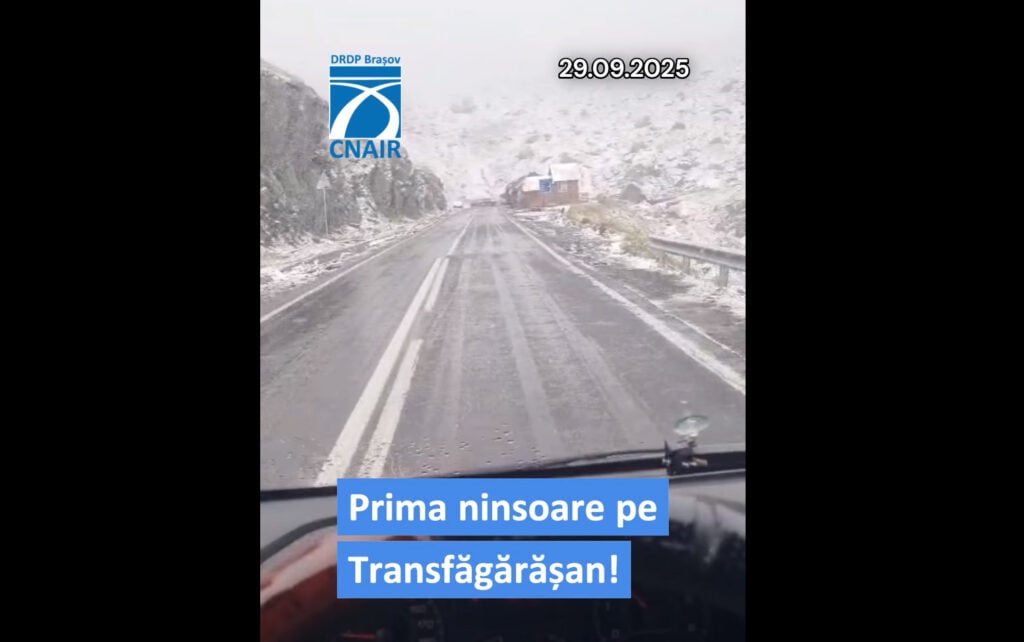 Prima ninsoare din acest sezon pe Transfăgărășan. Drumari intervin cu utilaje și material antiderapantReprezentanții Direcției Regionale de Drumuri și Poduri (DRDP) Brașov anunță prima ninsoare căzută din acest sezon pe Transfăgărășan. Drumarii intervin cu utilaje dotate cu lamă și materiale antiderapante. „În zona Bâlea Lac peisajul s-a albit în această dimineață în urma -